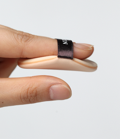 クッション面を軽く押して、パフにファンデーションをとり、頬・額・あごなど広い部分から、トントンと軽く叩くように薄くのばします。カバーしたい部分には、少量ずつ重ねて自然に仕上げます。