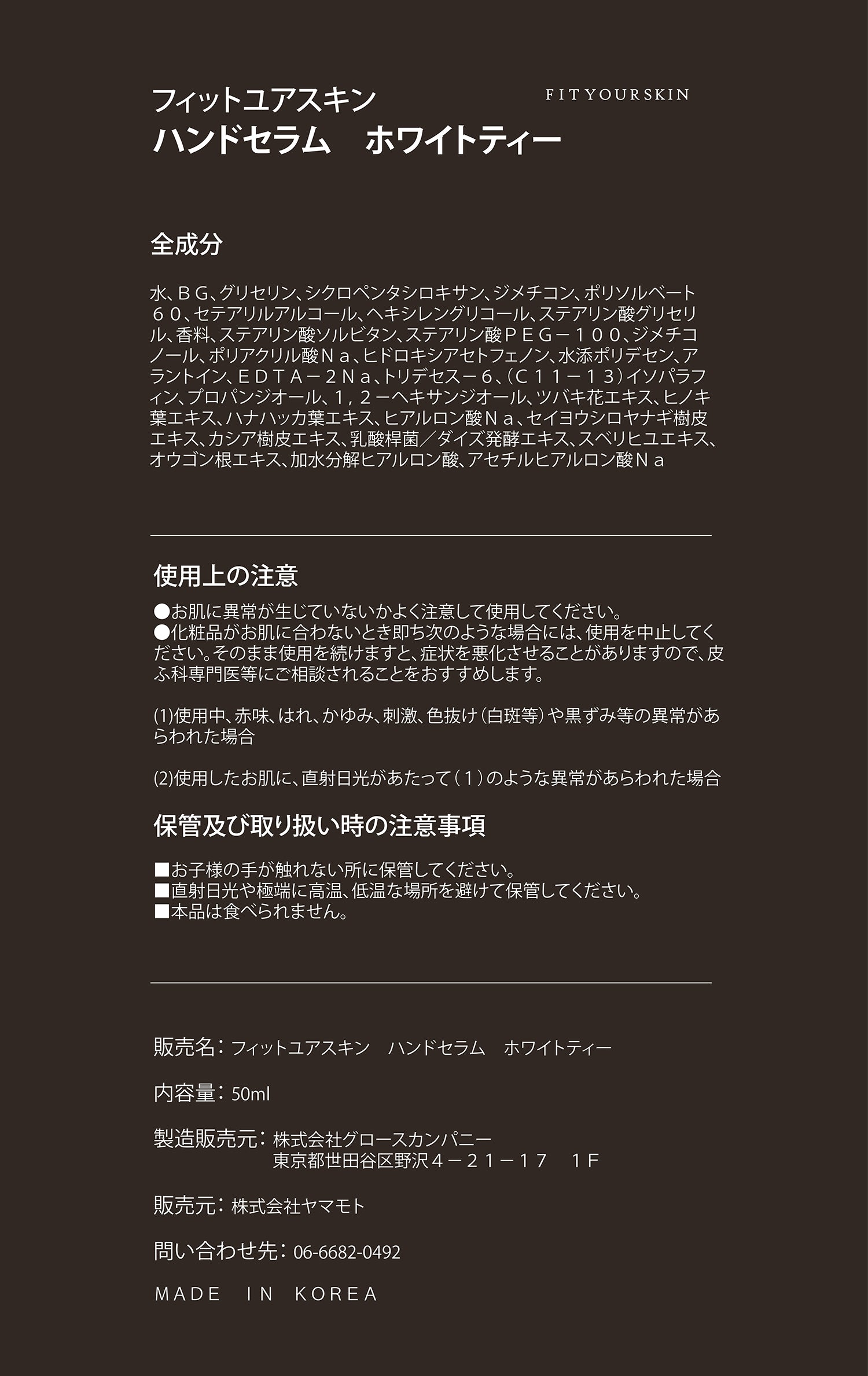 フィットユアスキン ハンドセラムホワイトティー 50ml