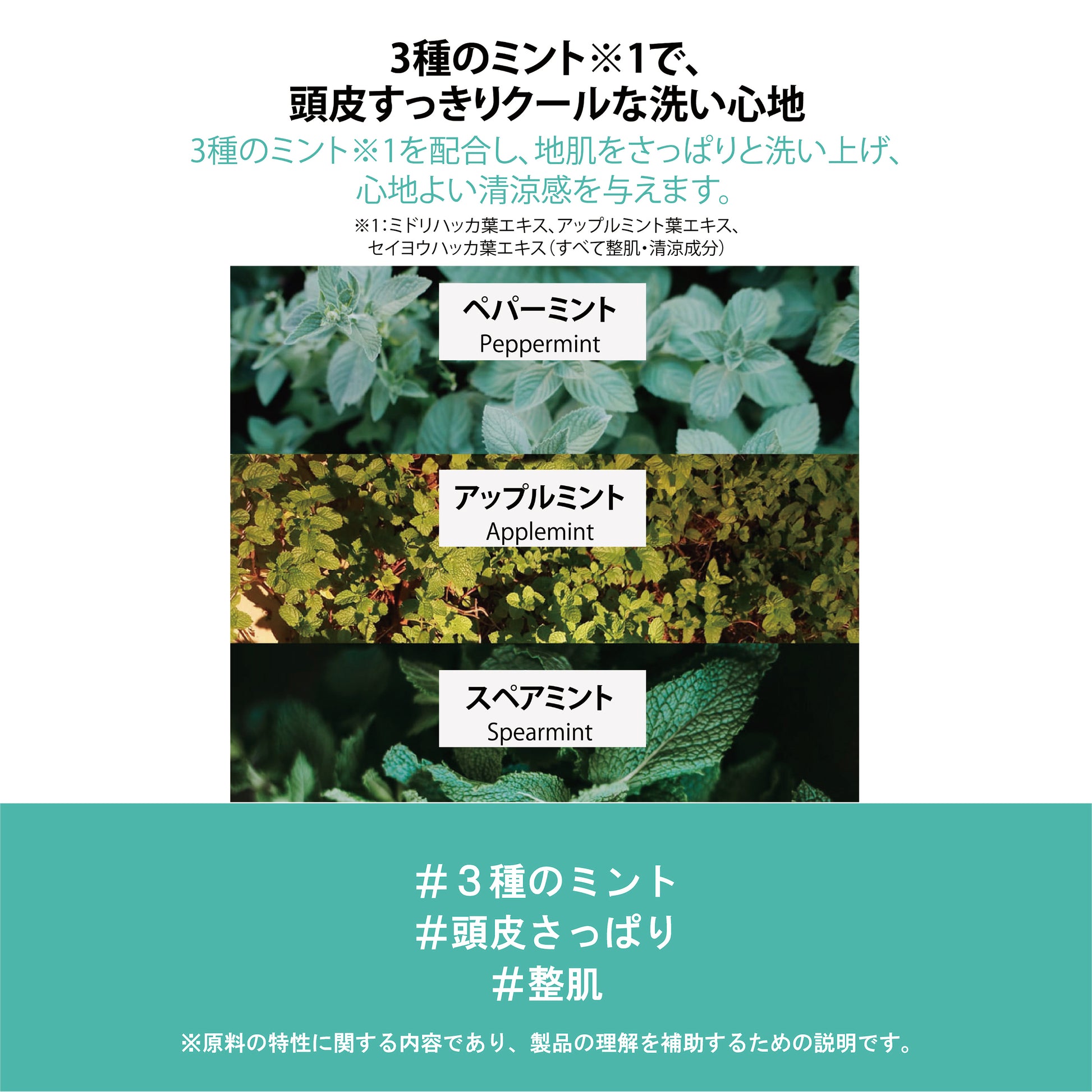 ※1:ミドリハッカ葉エキス、アップルミント葉エキス、セイヨウハッカ葉エキス(すべて整肌・清涼成分)